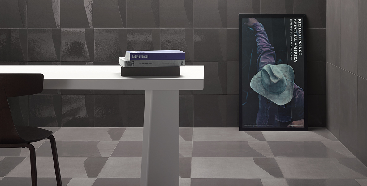 Numi is made of signs, handmade signs, specific signs, imperfect signs which become black stroke’s geometries, Sublimated through delicate contrasts and interpreted on a “soft” cement with natural and dusty pigments. Precise signs slowly become well-defined geometries, express through transparent and shiny patterns realised on a matt surface, creating delicate contrasts among matters.