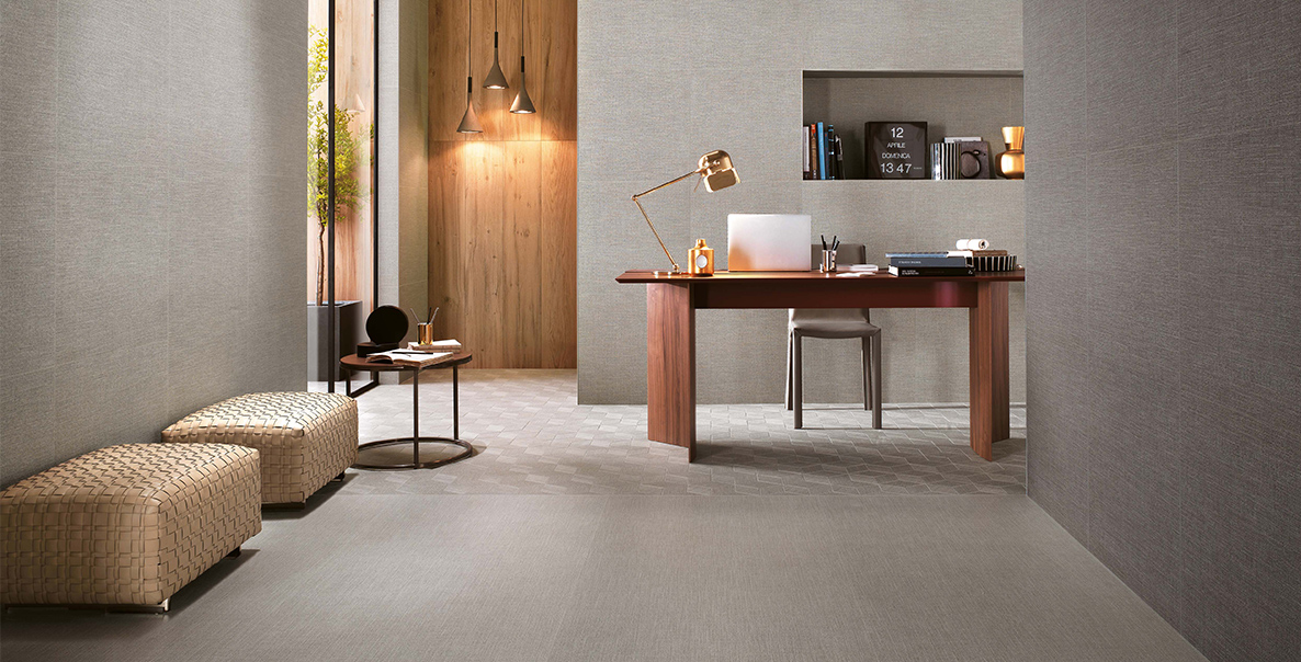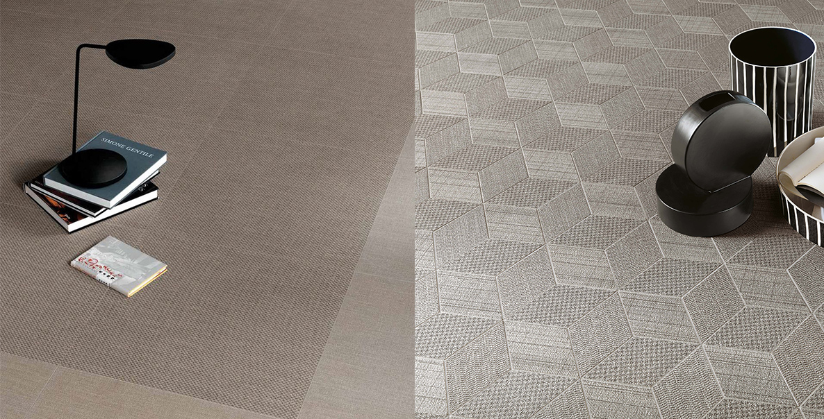 Furnishing fabrics, wallpaper and rich carpets are the inspiration for a collection of coordinated floor and wall tiles, to design warm, appealing interiors that are full of character. Minimalist, low-key fabrics are arranged alongside strong patterns in exclusive, sophisticated residential and commercial settings.