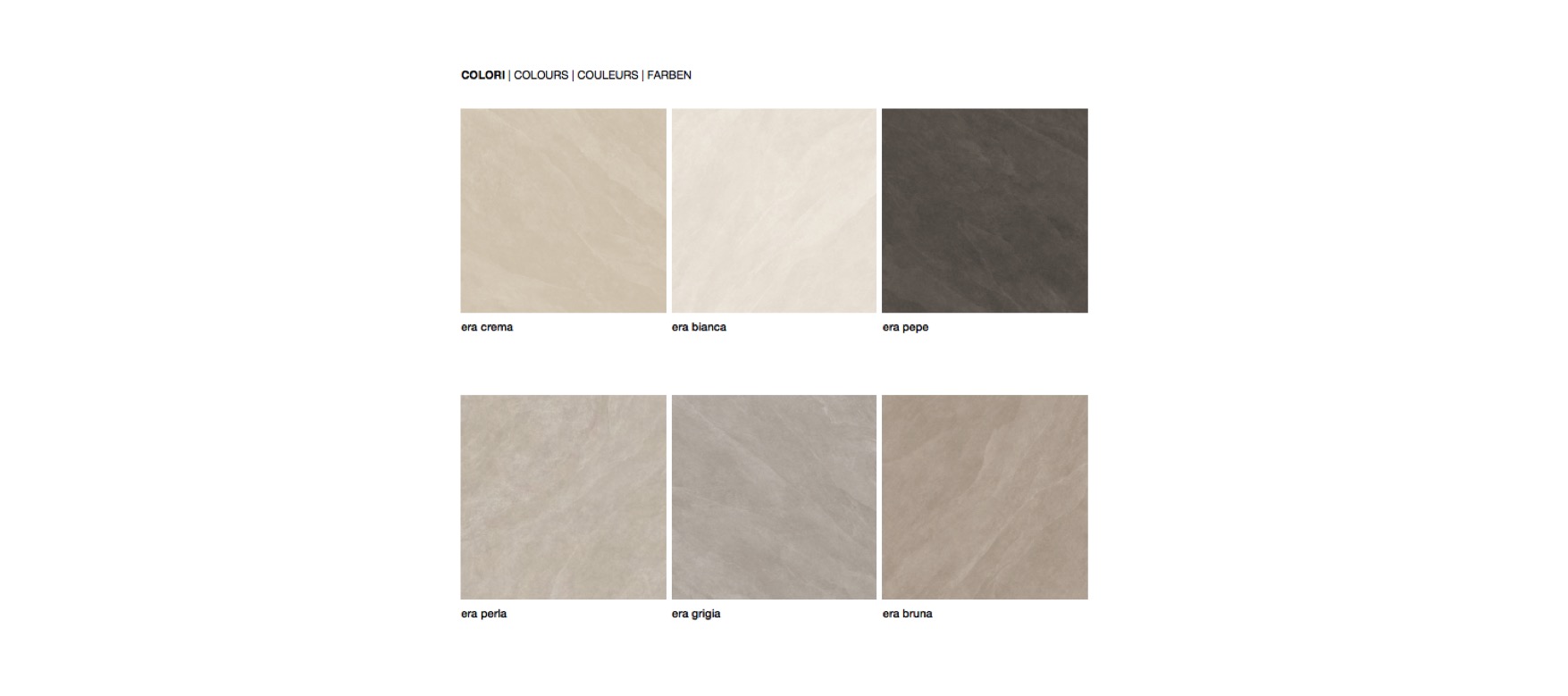 The Era collection results from continuous aesthetic research and advanced technologies and is the latest addition to Casalgrande Padana’s range of stone-effect porcelain stoneware tiles. These modern tiles combine stone’s natural charm and porcelain stoneware’s outstanding technical features, elevating their application potential. Irregular veining, harmonious nuvolato effects, delicate colours, and play of light and shadow emphasise these tiles’ colour and the pleasant tactile quality of their reference material.
